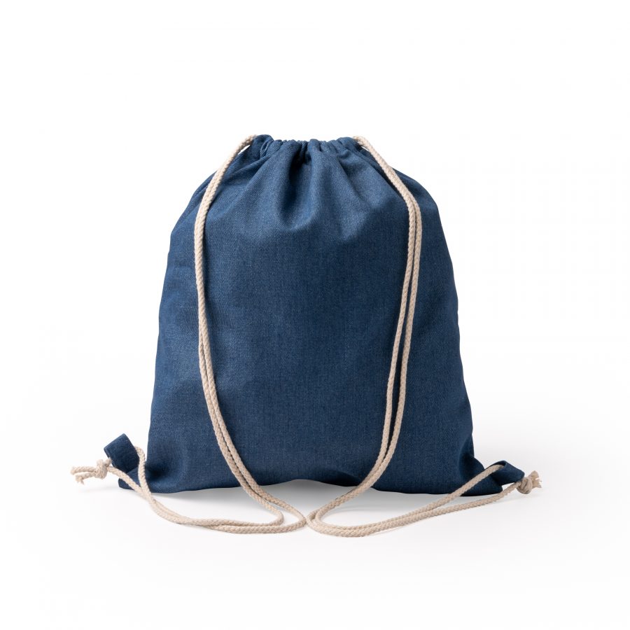 Mochila realizada en tejido vaquero reciclado con cuerdas de algodón de 8 mm.