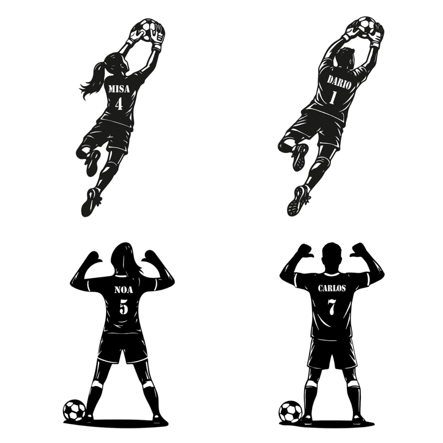 Disponibles en diferentes disciplinas deportivas —fútbol, baloncesto, tenis, pádel y muchas más—, cada silueta puede personalizarse con el nombre y número del jugador, creando una pieza única y llena de significado. Son ideales como regalo para deportistas, celebraciones de fin de temporada, cumpleaños o como recuerdo especial de un equipo.